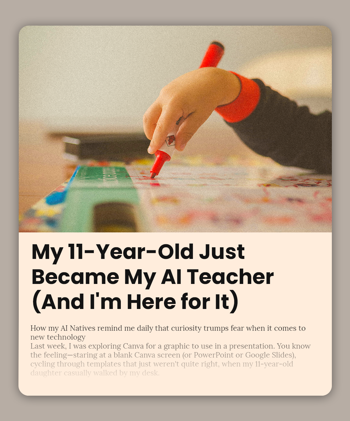 How my AI Natives remind me daily that curiosity trumps fear when it comes to new technology Last week, I was exploring Canva for a graphic to use in a presentation. You know the feeling—staring at a blank Canva screen (or PowerPoint or Google Slides), cycling through templates that just weren’t quite right, when my […]