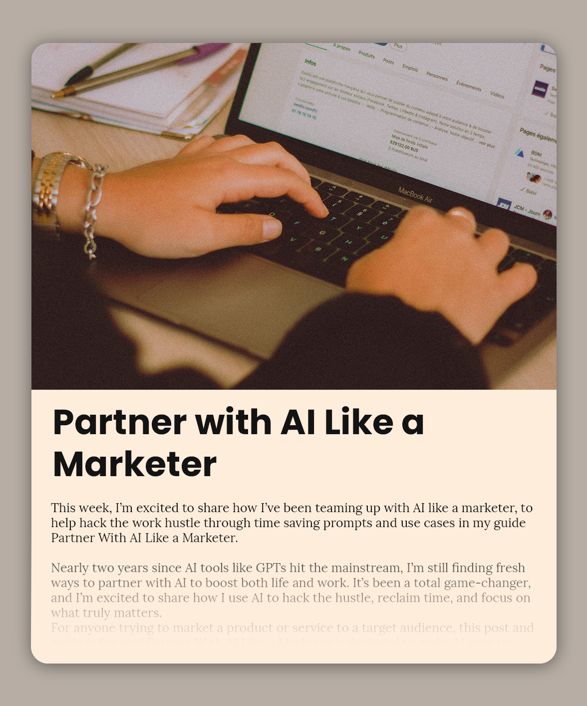 This week, I’m excited to share how I’ve been teaming up with AI like a marketer, to help hack the work hustle through time saving prompts and use cases in my guide Partner With AI Like a Marketer. Nearly two years since AI tools like GPTs hit the mainstream, I’m still finding fresh ways to […]