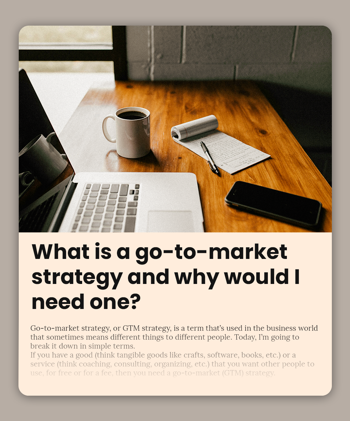 Go-to-market strategy, or GTM strategy, is a term that’s used in the business world that sometimes means different things to different people. Today, I’m going to break it down in simple terms. If you have a good (think tangible goods like crafts, software, books, etc.) or a service (think coaching, consulting, organizing, etc.) that you […]